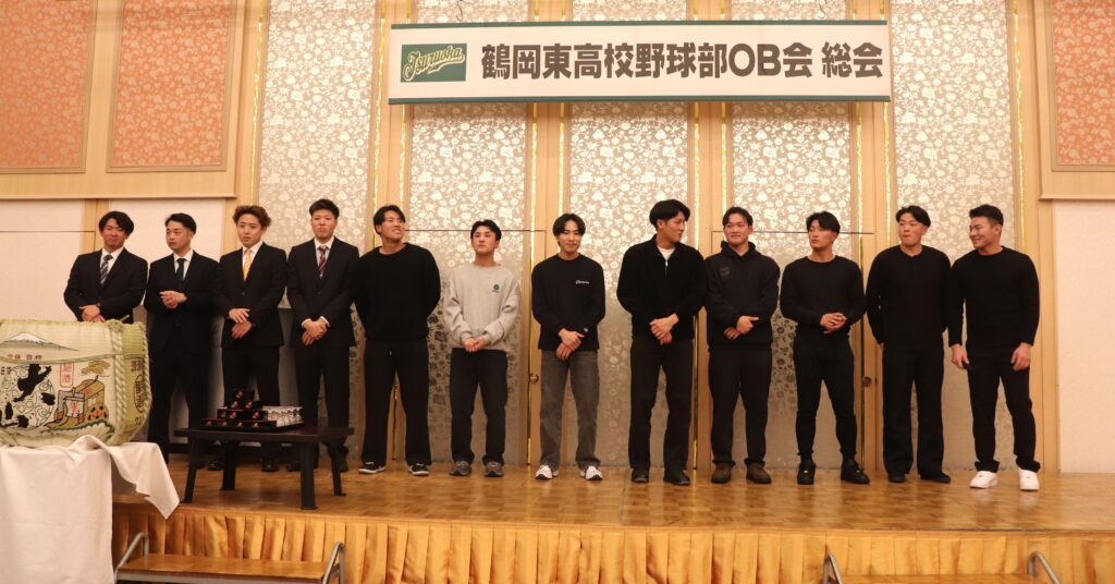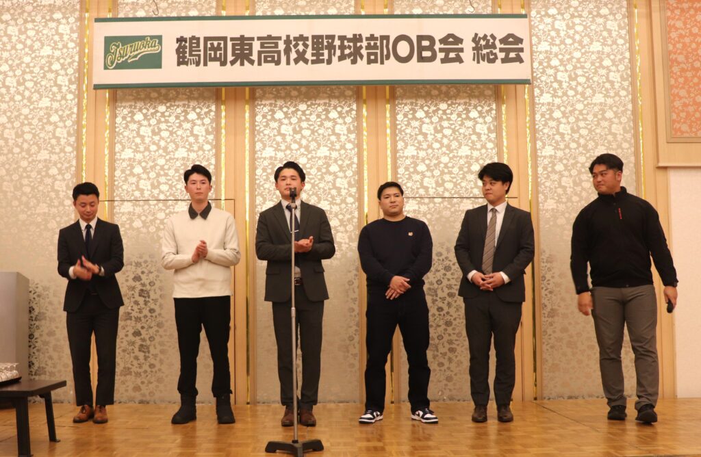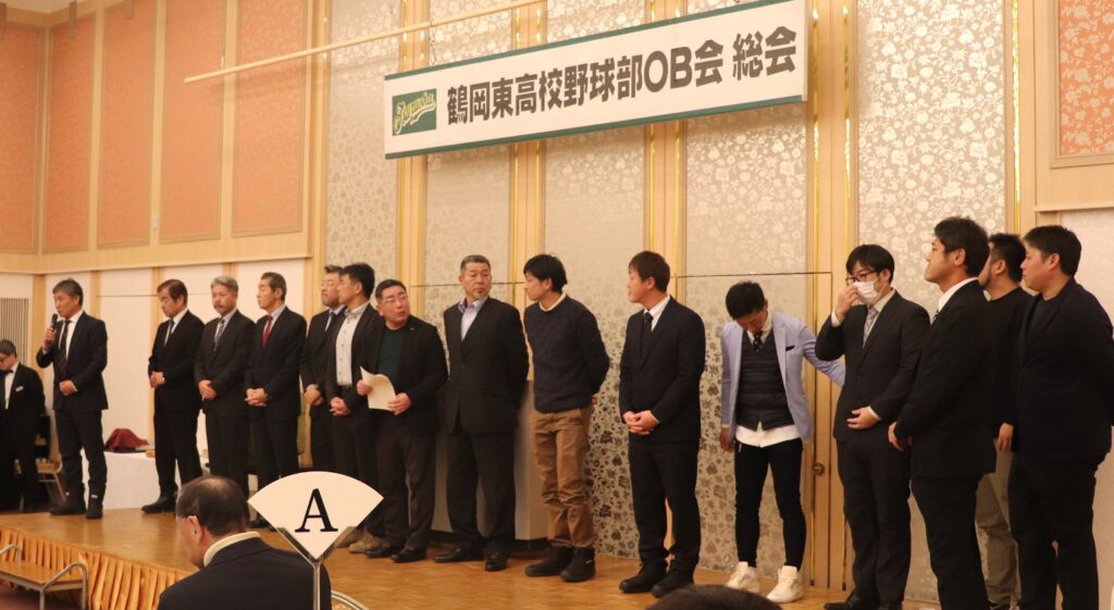 photo-ob総会 令和7年度 2026年1月25日 2026年1月25日 Facebook icon Twitter icon Line icon 令和7年度OB総会・懇親会 令和8年1月11日(日) 東京第一ホテル鶴岡 多数のOBの皆様に参加いただきありがとうございました。 加藤徹OB会長の挨拶から総会がスタート 石川徳和事務局長より事業活動の報告 菅原健志事務局次長より会計監査報告 佐藤宏一会計理事より活動計画及び予算説明 総会の進行は齋藤洋介理事 今回は役員の改選がありました。新役員についてはホームページでご確認ください。 総会終了後、懇親会へ 遠藤一徳副会長による開会のことば 阿部雅慶野球部長に来賓挨拶をいただきました。 佐藤俊野球部監督の挨拶 君島厚志様(昭和54年卒)の乾杯の音頭で宴がスタート 恒例の鏡開き 吉岡航平野球部副部長より野球部近況報告 現チームから前主将の酒井友成(3年)、現主将の小川蒼太(2年)がそれぞれ挨拶 懇親会の司会は庄司大貴理事 野球部の歴史を振り返るDVD上映もありました。 若手OB(令和3年卒~6年卒)が壇上で挨拶 平成28年卒のOBのみなさんも壇上で挨拶 草島学副会長の三本締めで閉会 OBの皆様、来年の参加をお待ちしております。