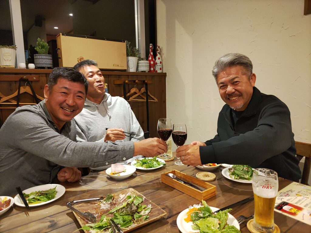 天気にも恵まれ、参加OBは和やかにプレー。「肉菜バルNiGoo」での表彰式も盛り上がりました。